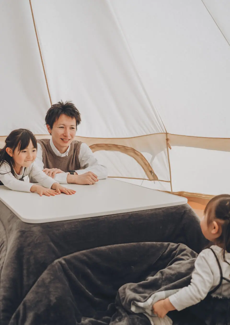 | 3 | 10.1 | 14.6 | 5.1 | 日中は暖かい日も多くなってくる季節。寒暖差が激しいのでまだまだ防寒対策は必要。寝袋は冬用推奨。BELLテントには「こたつ」が完備される。 |